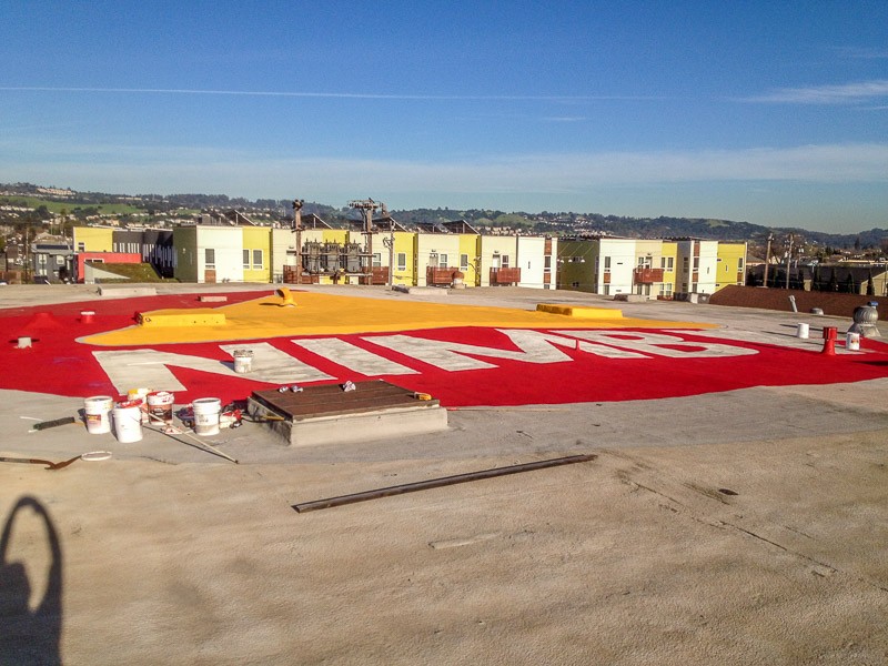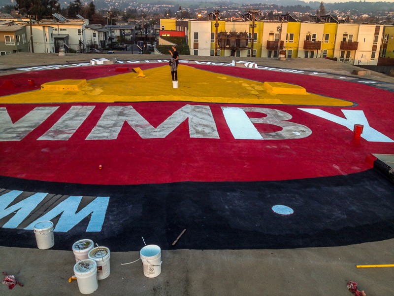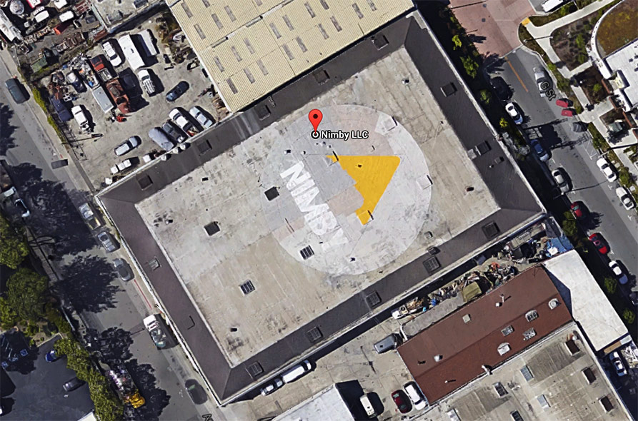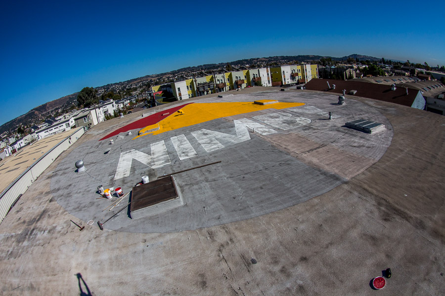 Here at NIMBY, we’re kind of fond of our bodacious logo, which is why you can find it all over this site, our various vehicles, hot panties (we still have some! Email us!) and stickered around town. But every now and then, we just say: BIGGER! So we put it on the roof! With a 100 foot diameter, I’m pretty sure it’s visible from space now… Ok, maybe not THAT big, but you can definitely see it from a plane and on Google Earth.