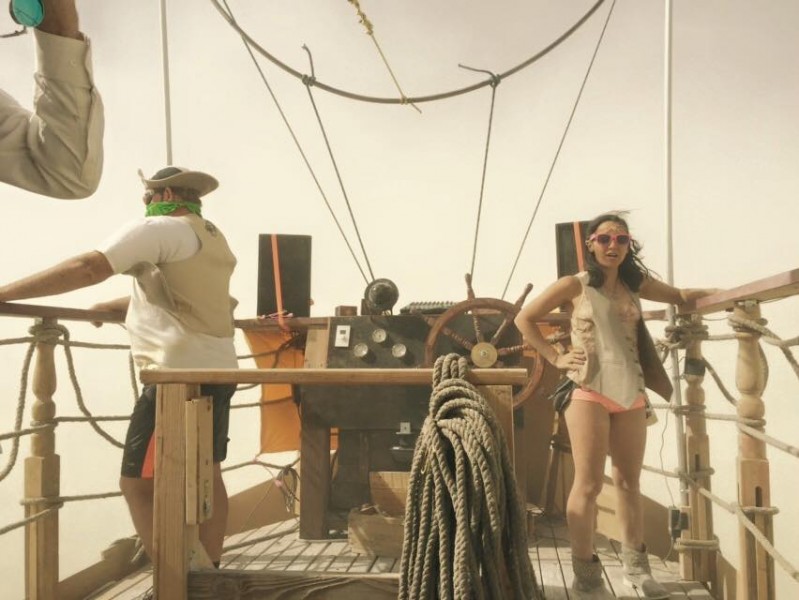 The Bombus Regius ( latin approximation for Royal Honeybee ) is an alternate history steampunk airship with a touch of nautical flair. Our special take on a conveyance will add class comfort and wonder. Featuring a comfortable interior with seating, a spiral staircase to the top. An upper deck for viewing, featuring the main control station ( full of gauges and gizmos! ), a lounge, and lovely dirigible shaped shade structures.