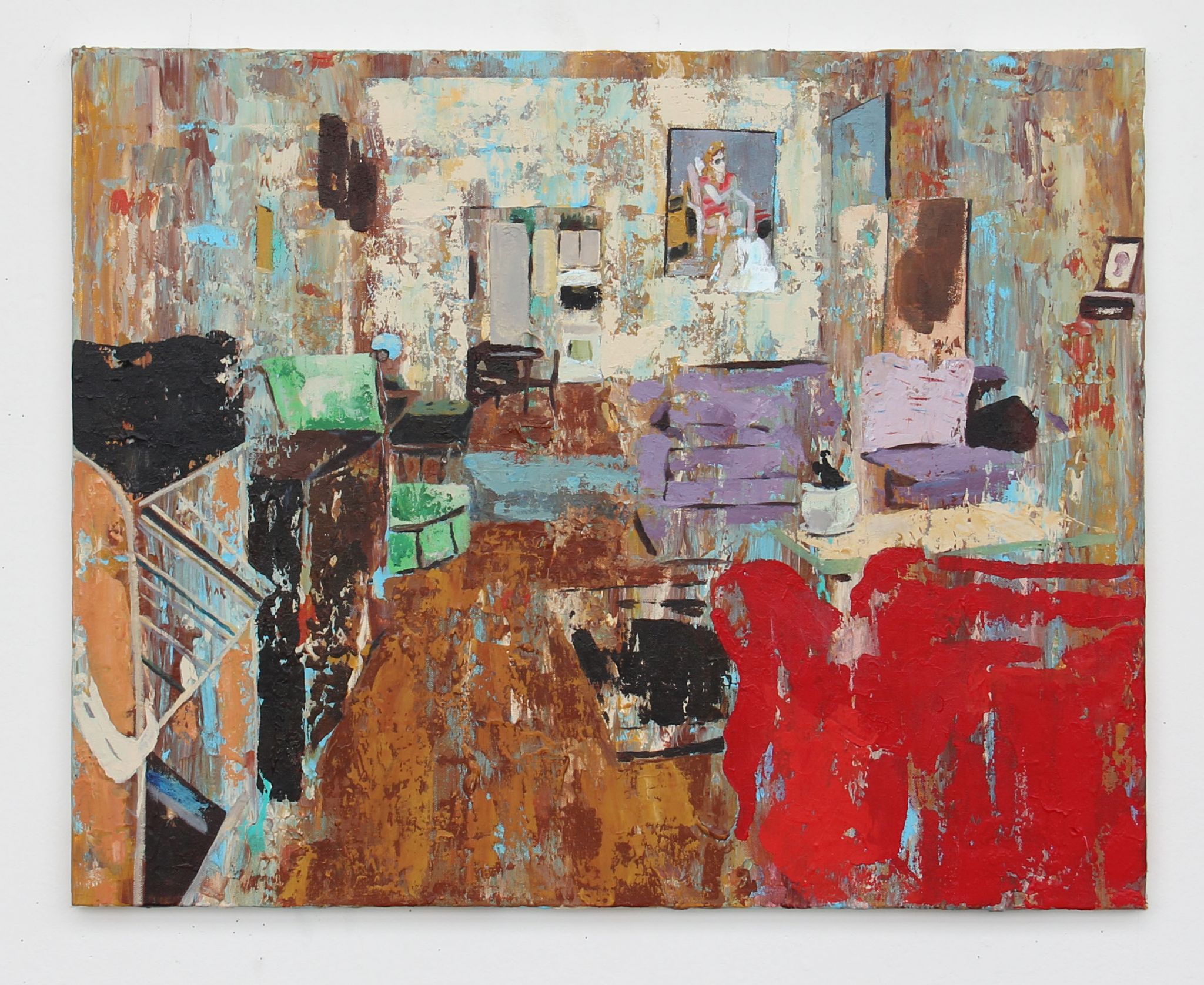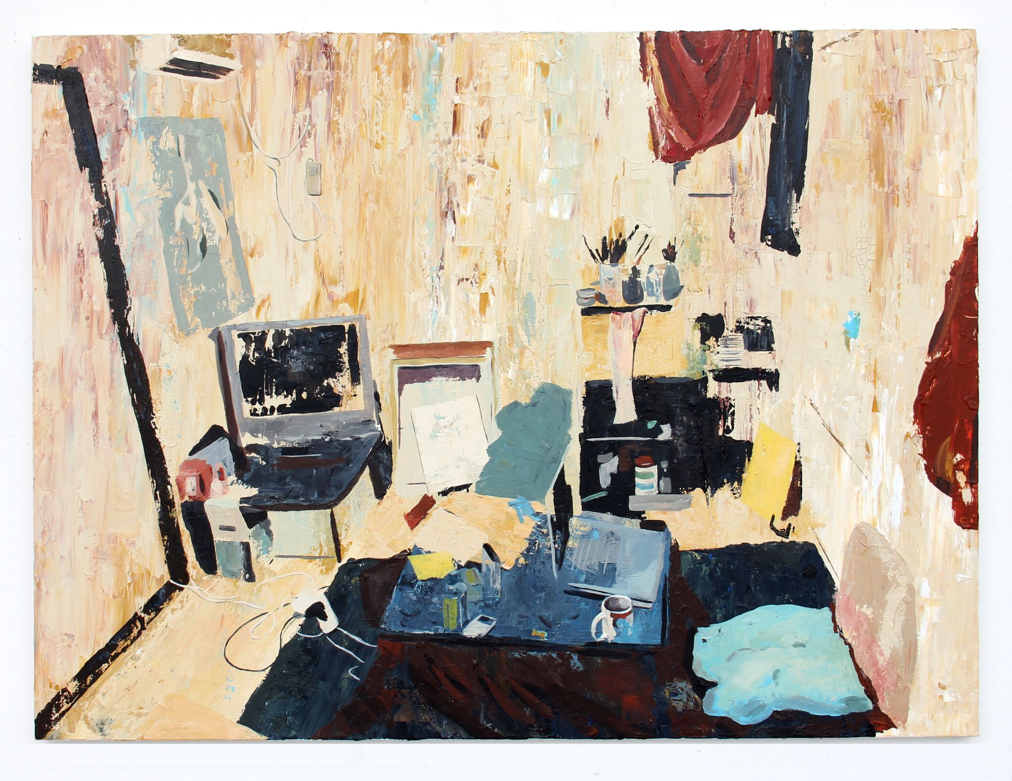 With some of my newest works, I’m directing this curiosity toward making descriptive interior spaces. I capture the portraits of my subjects obliquely by depicting the spaces they inhabit. I’m working a lot with memory and like memory my portraits aren’t always clear. I accept distortion as being an important part of any memory and allow that to show.