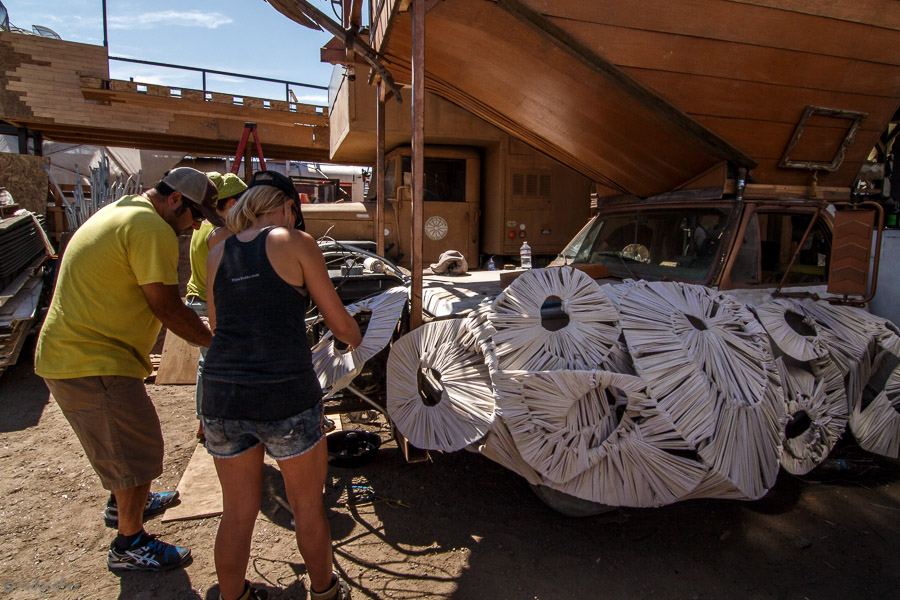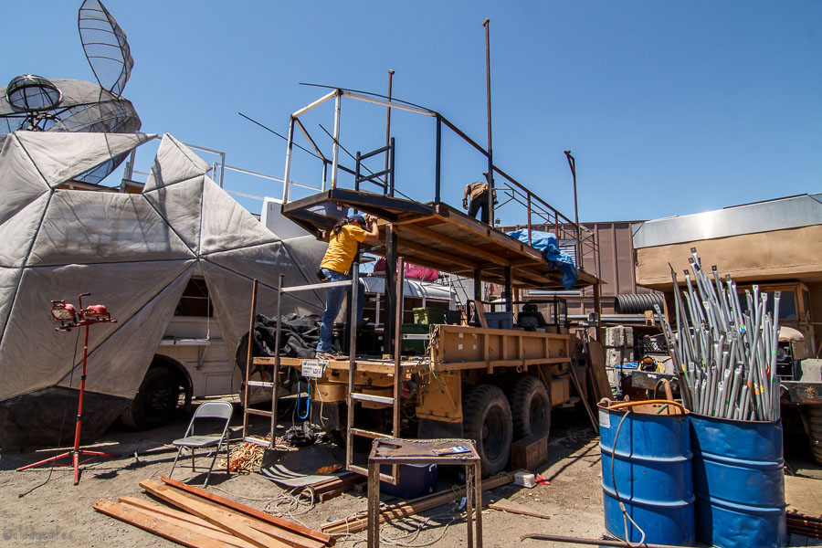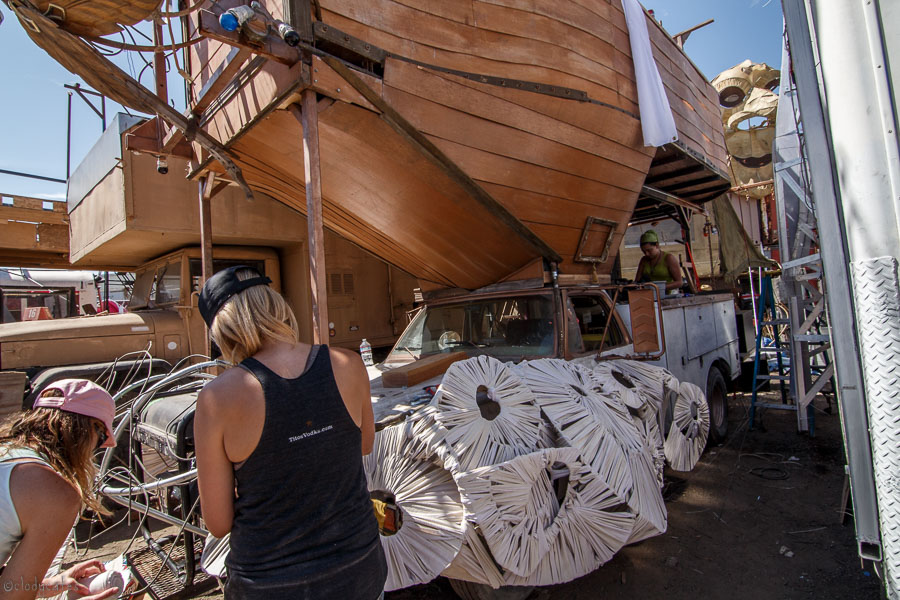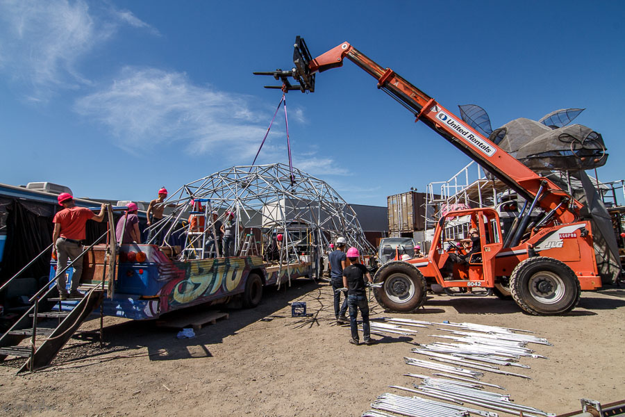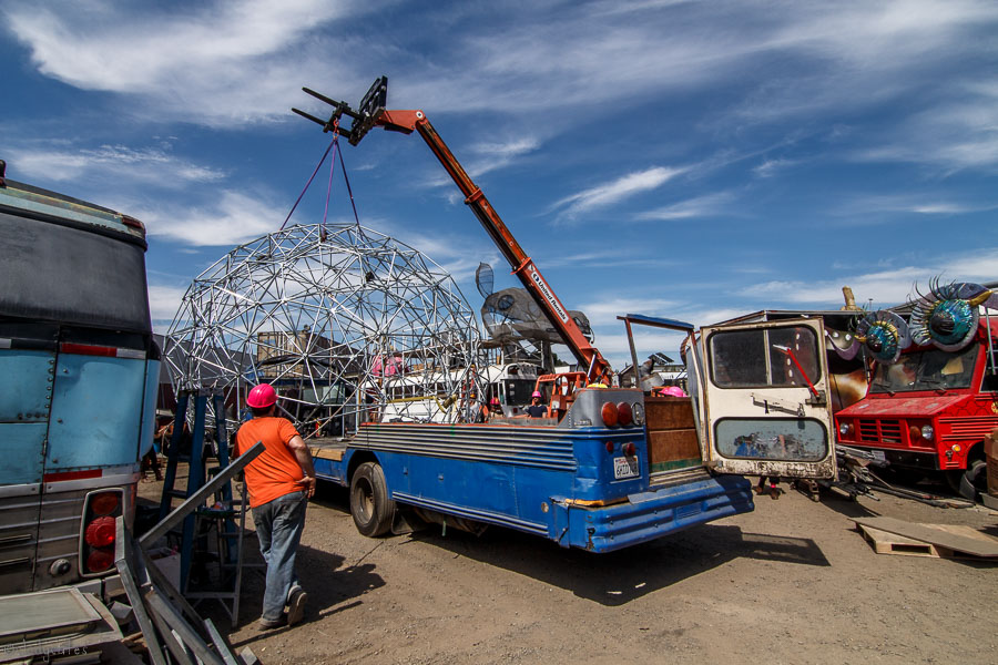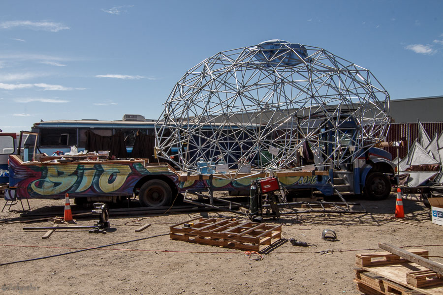 Congratulations to all of our new camps on successfully making out to Burning Man and returning back in one piece: Dr. Brainlove, the Cushy car, Titanic’s End, and the Kazbah pyramid. Excellent work from all of our veteran Burners: Airpusher, BAAAHS (dare we make the pun? … great new head!), Casey Ho and the Perry Ellis, the East Bay Corp with the Alien Siege Machine, Camp Celebration, Sugar Cubes, Pangaea and the Diva Nation, Pipe Dream, Beezus Christ Super Car, Bruce Tomb with Maria Del Camino, Richard Lee with Yurt-tastic, Clody Cates and Gaige Qualmann’s wonderful work with Media Mecca, Matt Wirth with the Tilt-a-Hurl, and Deb Davies who returned from the UK to make the Starway sculpture.